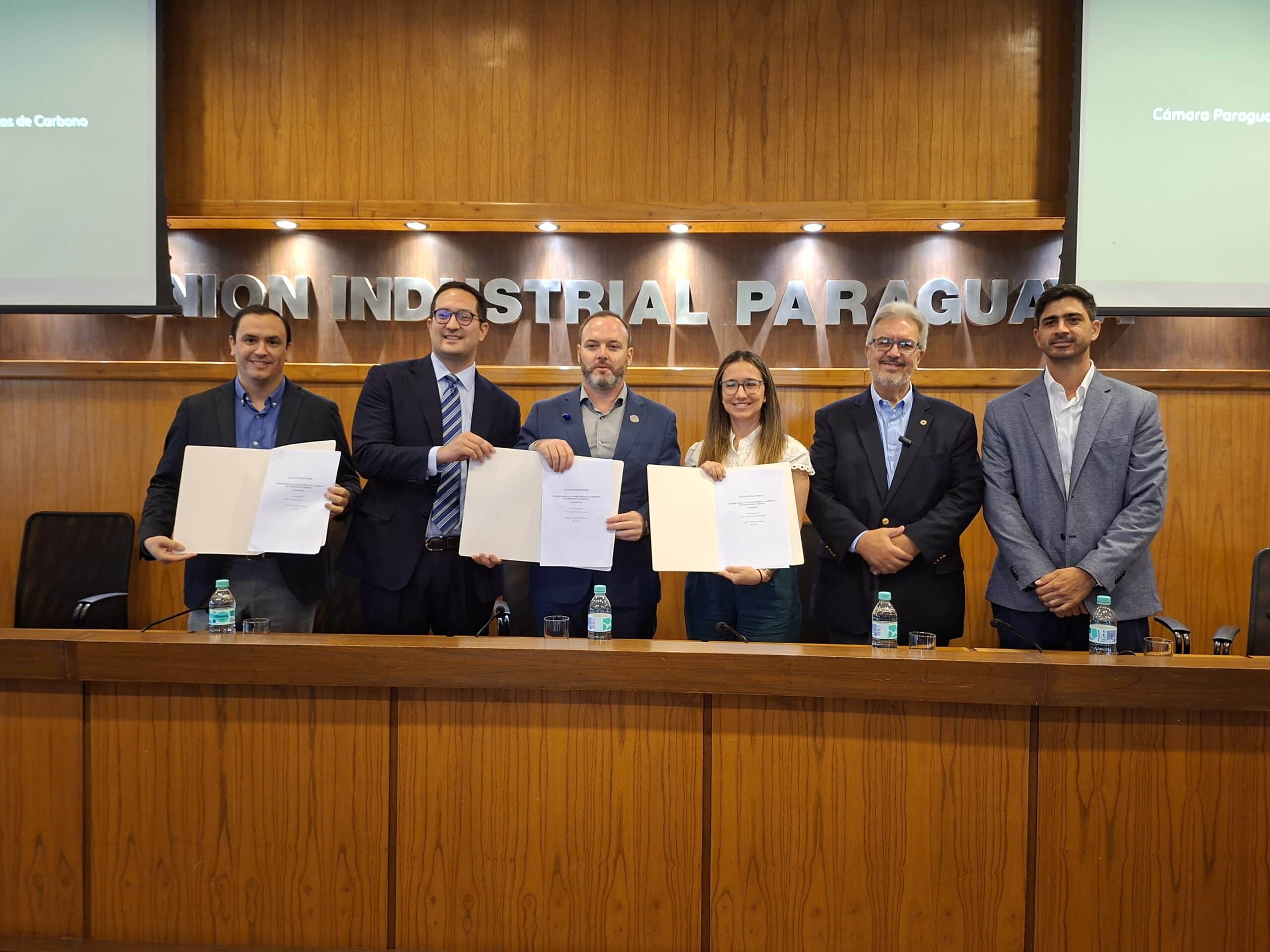 La Cámara Paraguaya de Desarrollo y Comercio de Créditos de Carbono fue creada por empresas vinculadas al ecosistema del mercado de carbono, entre ellas Atenil Paraguay, Quadrix, Carbon Market Coalition y Eco Securities. El acta fundacional fue suscripta por los representantes de estas compañías y contó con la participación de autoridades nacionales como testigos institucionales, entre ellos el presidente de la Unión Industrial Paraguaya, Enrique Duarte; el ministro del Ambiente y Desarrollo Sostenible, Rolando de Barros Barreto; y el ministro del Gabinete Civil de la Presidencia, Rodrigo Maluff.